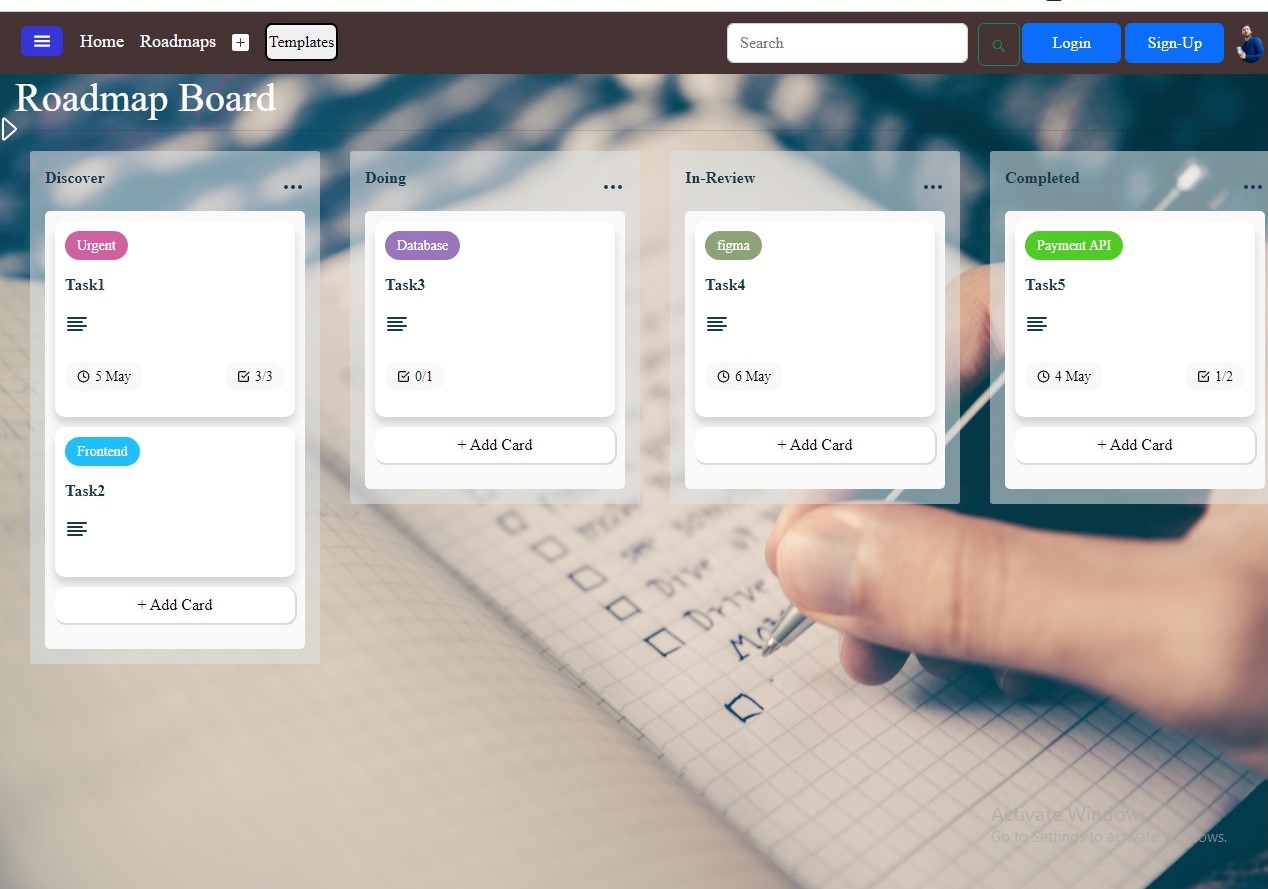 RoadMap is the visual tool that empowers your team to manage any type of project, workflow, or task tracking. Add files, checklists, or even automation: Customize it all for how your team works best. Just sign up, create a board, and you’re off!